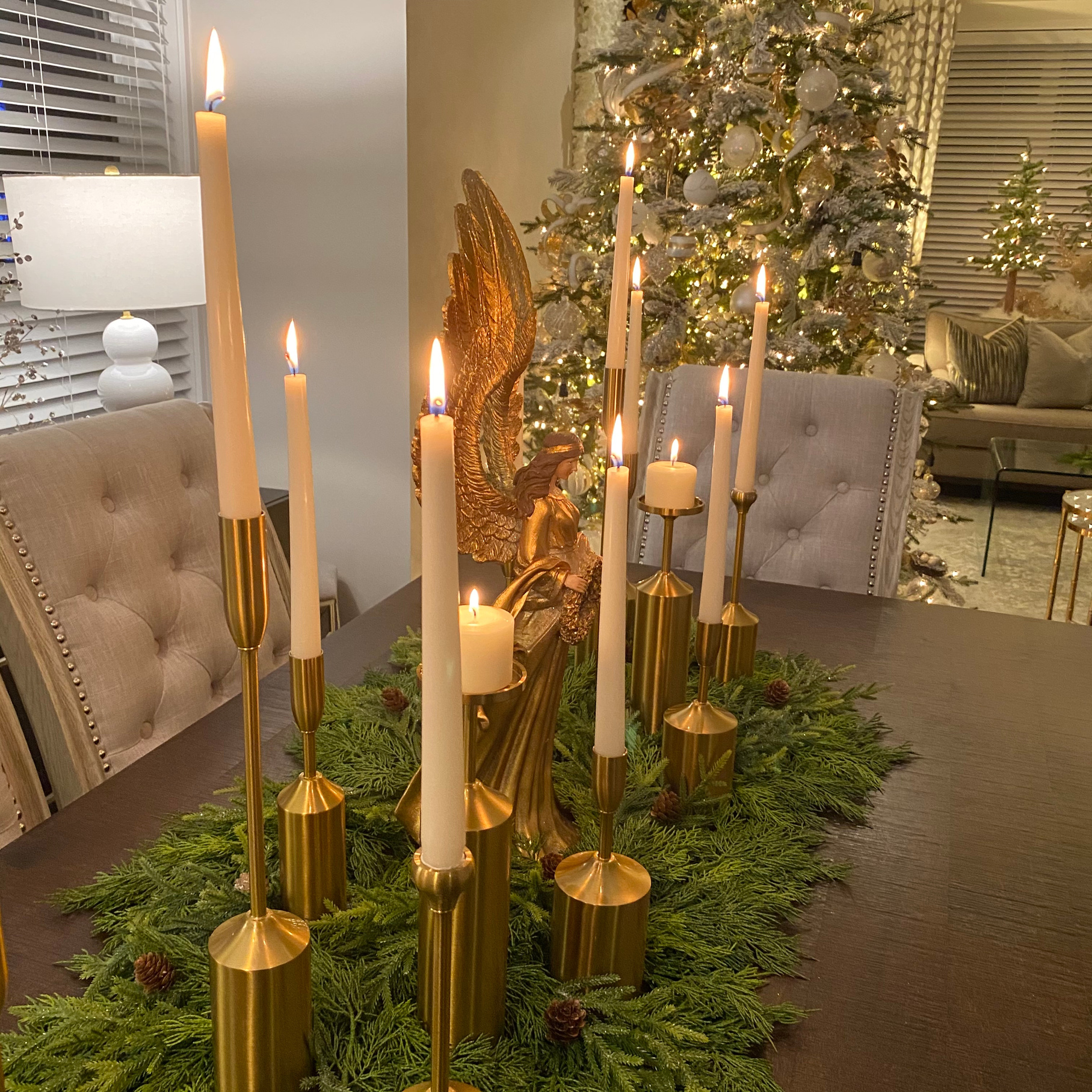 Warm color palette with beige, nude tones, amber & a touch of crystal and drenged in icicles and flocked snow tips
